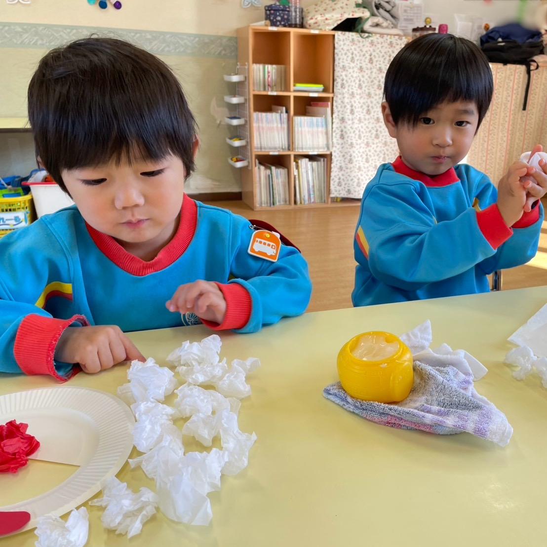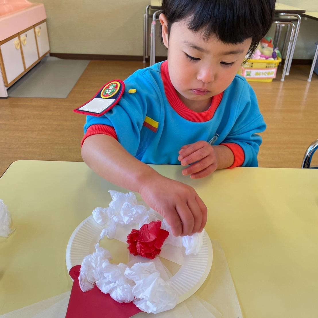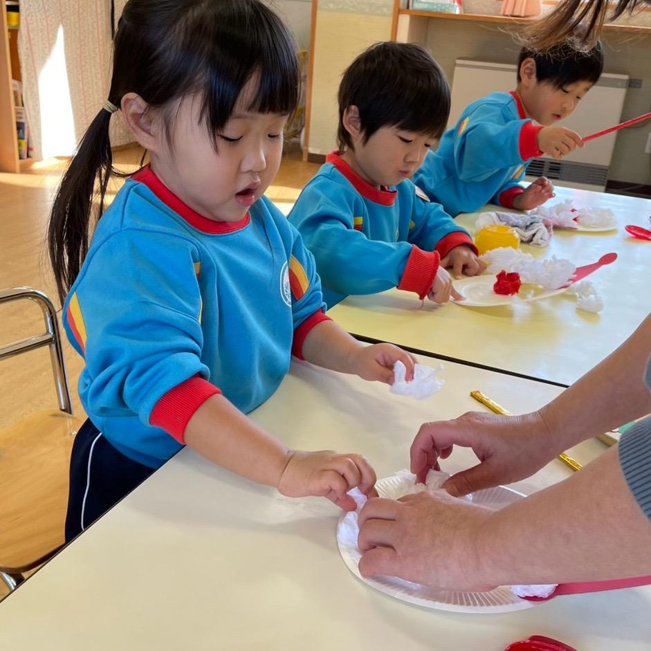 白いお花紙を丸めてお髭をたくさん貼りました💕