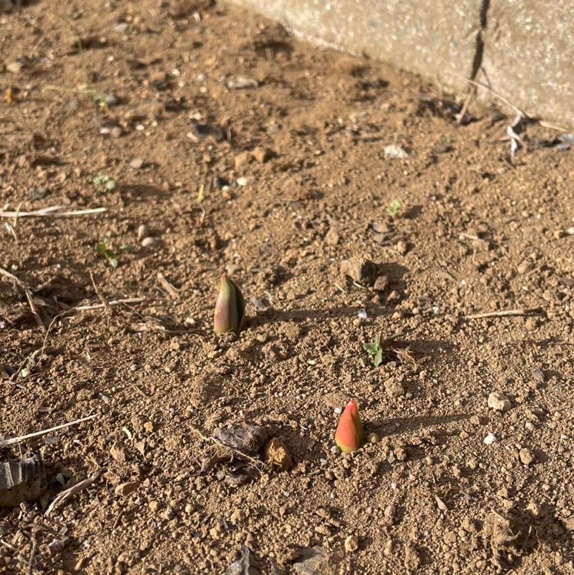 みんなで秋に植えたちゅうりっぷの球根から小さなかわいい芽が出ました🌷