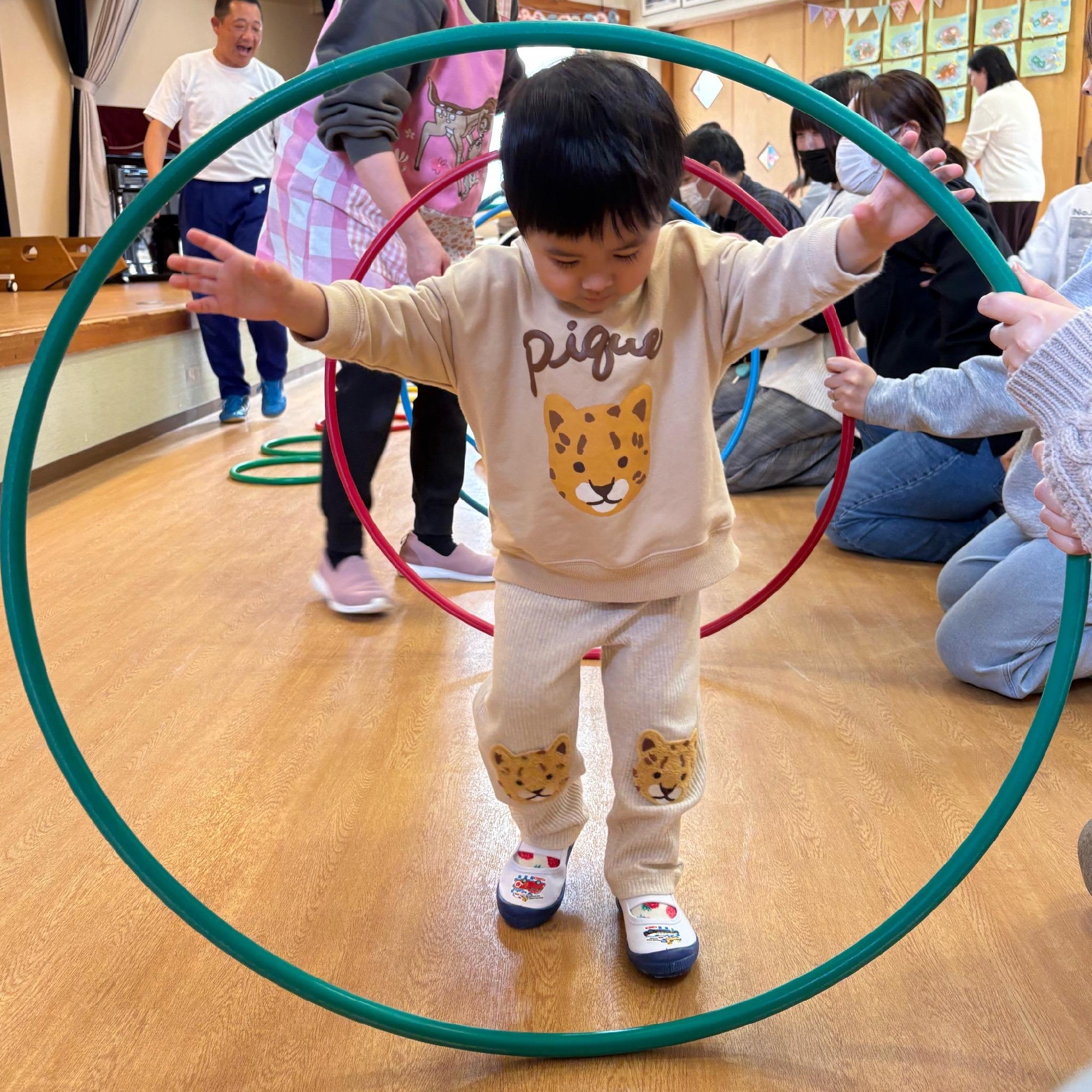 フラフープを使って、ジャンプしたり、トンネルをくぐったり、最後はマット怪獣を倒しました😈💥